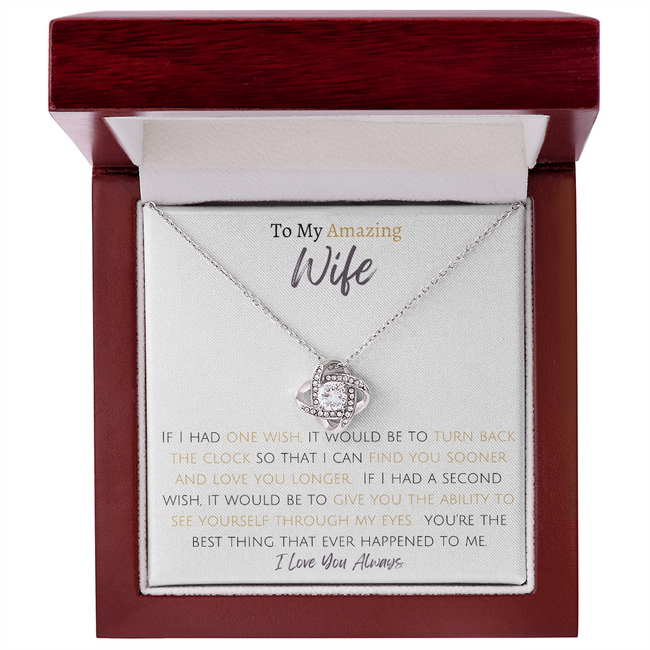 Imagine her reaction receiving this beautiful Love Knot Necklace. Representing an unbreakable bond between two souls, this piece features a beautifully woven pendant embellished with premium CZ stones. Choose between either a luxurious 14k white gold finish or a timeless 18k gold finish to complete the look. Surprise your loved one with this gorgeous gift today!